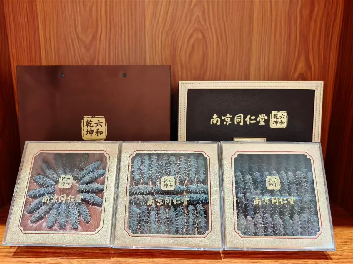 产品名:海参 品牌:南京同仁堂 简介:海参含有丰富的岩藻多糖,人体必需的18种氨基酸,胶原蛋白、牛磺酸、粘多糖、皂苷、硫酸软骨素、多肽,角蛋白,大量的精氨酸及多种维生素和微量元素等活性成份。可以预防心血管疾病,健脑益智,生血养血和促进钙质吸收,促进伤口愈合,增强免疫力。